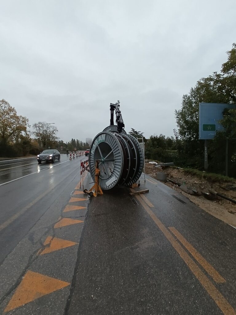 Liaisons des grosses sections pour les bâtiments et tirage de câble basse et moyenne tension (route pour les raccordements).